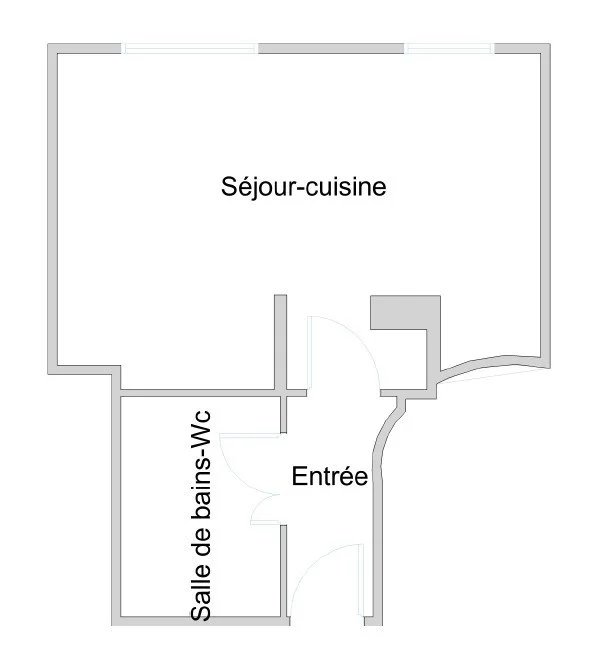 L’appartement se compose d’une entrée, d’une pièce principale avec deux fenêtres offrant un espace de vie agréable, d’une cuisine ouverte sur le séjour, ainsi que d’un coin nuit avec penderie intégrée. Une salle de bains avec WC complète le bien.